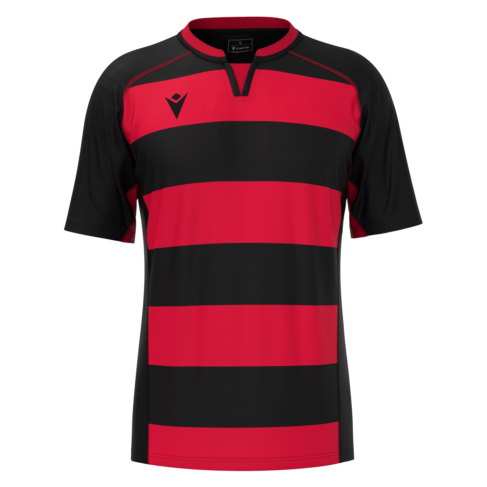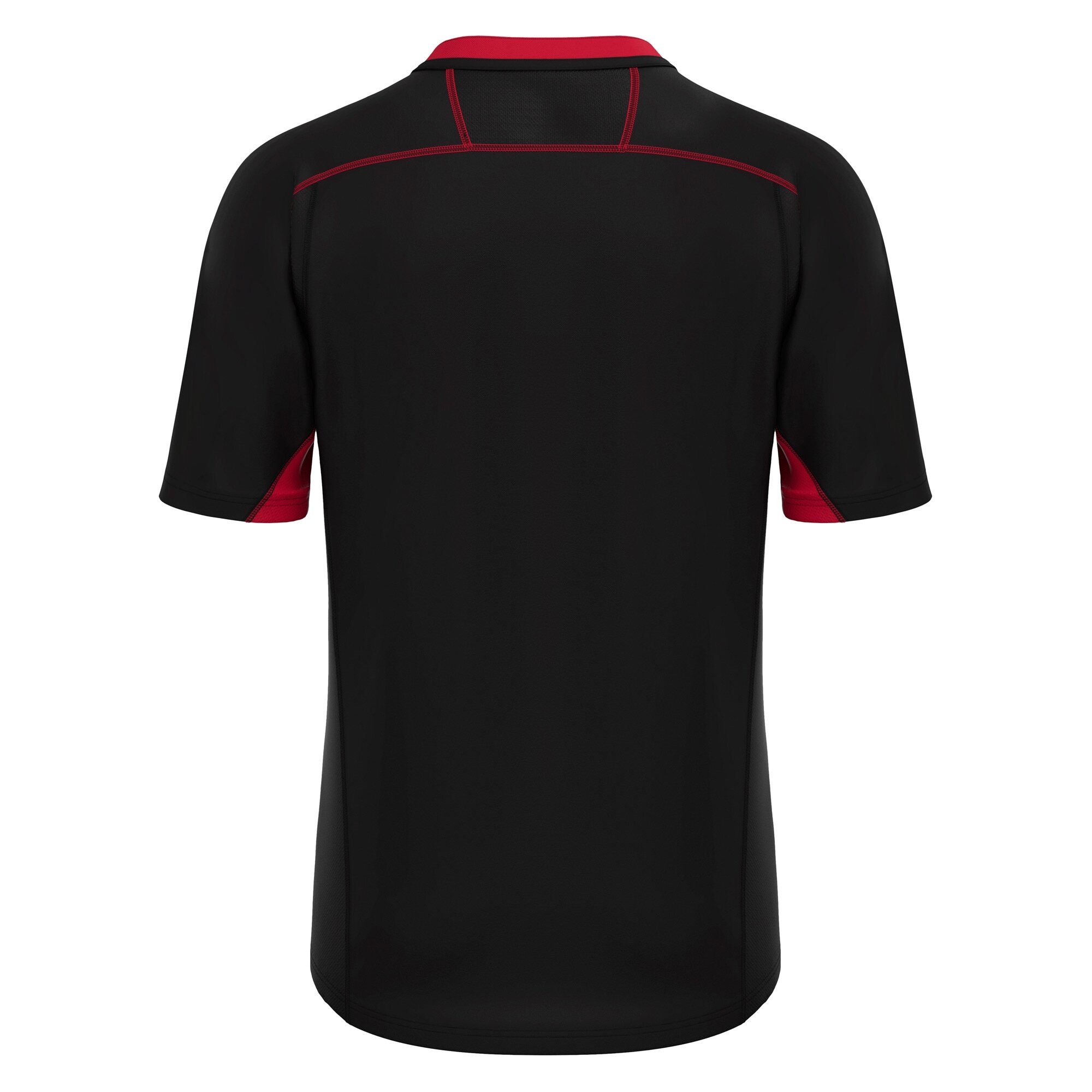 Rugby match jersey made from a combination of tear-resistant fabrics. The innovative design includes inserts that increase breathability and add an eye-catching visual detail with their vibrant color and distinct texture. The slim-fit shape adapts to the body without restrictions, ideal for ensuring maximum freedom of movement during intense sports activities. Reinforced seams ensure durability and resistance, while the mandarin collar adds a touch of style. Available in various colors.