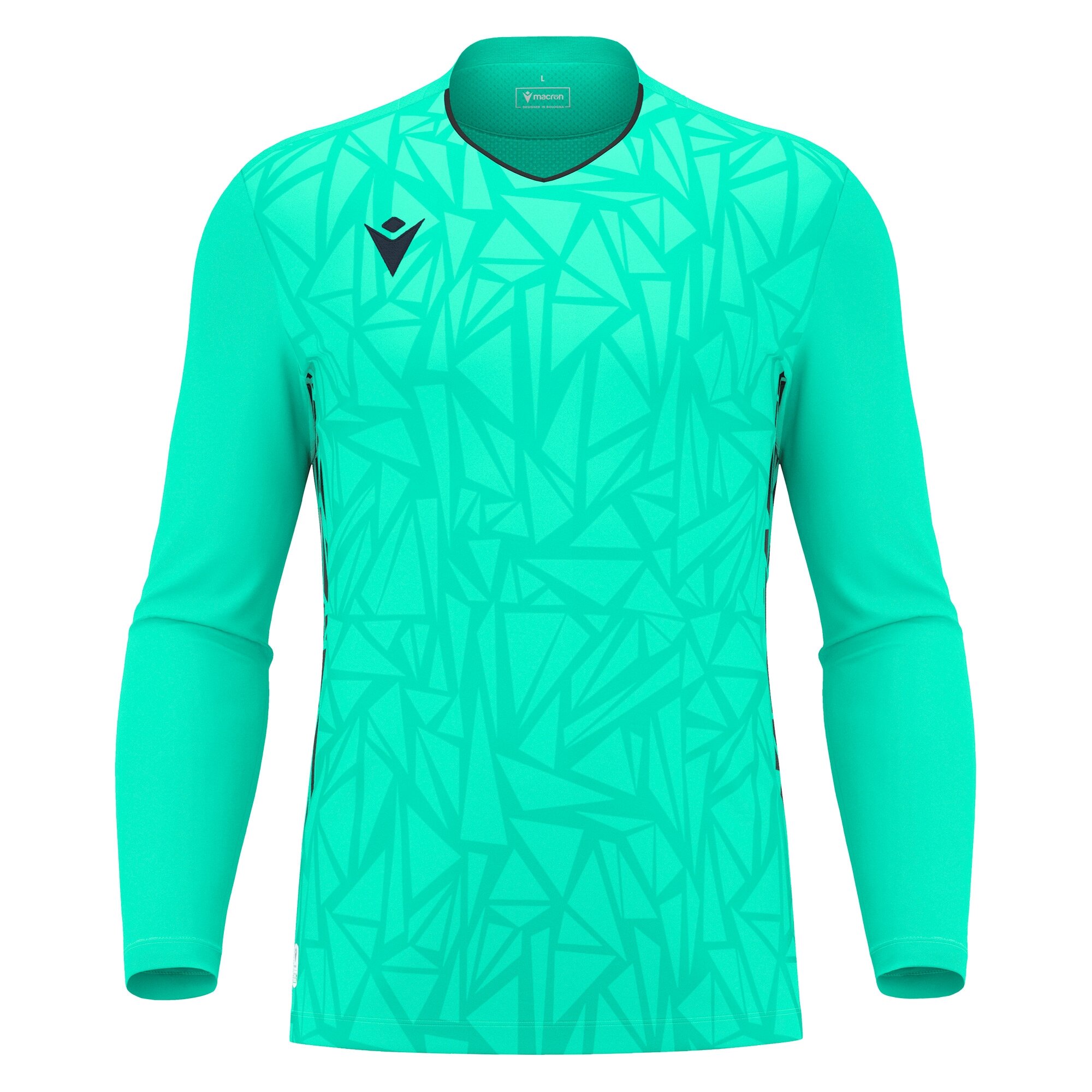 Tricou de joc pentru portar, realizat integral din material EcoFabric, obținut din PET 100% reciclat. Gulerul tricotat în V are o bordură (piping) pe partea frontală. Spatele din Eco micromesh garantează o respirabilitate superbă. Tricoul prezintă o textură sublimată ton pe ton pe partea frontală și inserții laterale din Eco mesh care repetă aceeași textură, evidențiată prin logo-ul Macron Hero. Disponibil în 4 variante de culori.