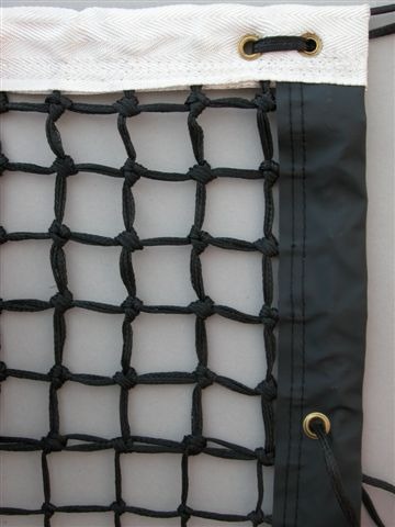 | Fileu tenis PP polipropilena fara nod, Ø 4.5 mm ochi patrat, banda superioara POLIESTER(110mm), parte laterala banda PVC neagra; plasa taiata inaltime laterala cm 107, inaltime centrala cm 92,cablude otel cu invelis de plastic, ml 12,75×1,07 |