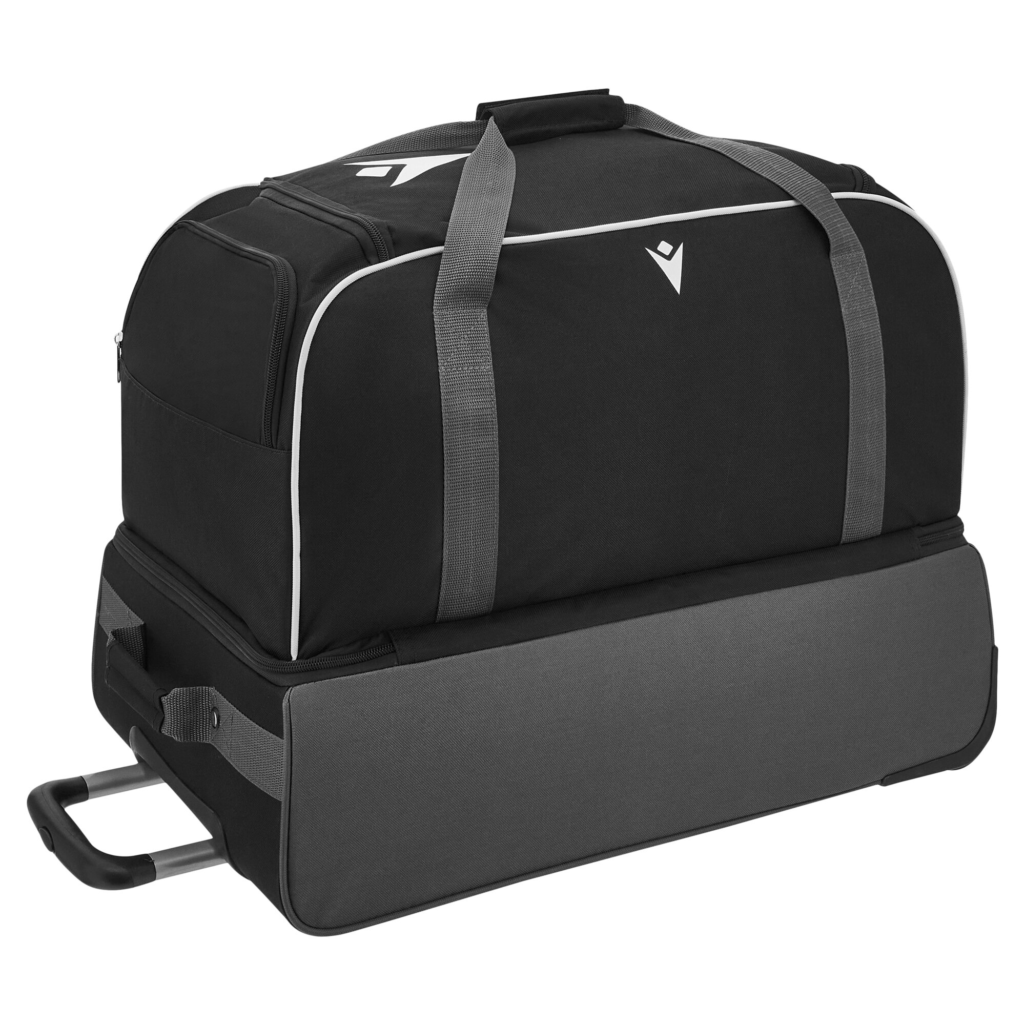 Cerniera 8mm – cursori di metallo,Pulsante manico autobloccante,Fondo con vaschetta rigida 16 cm,Trolley,Posizione ottimale del piedino per rendere piu’ bilianciato il trolley e non rovinare il tessuto