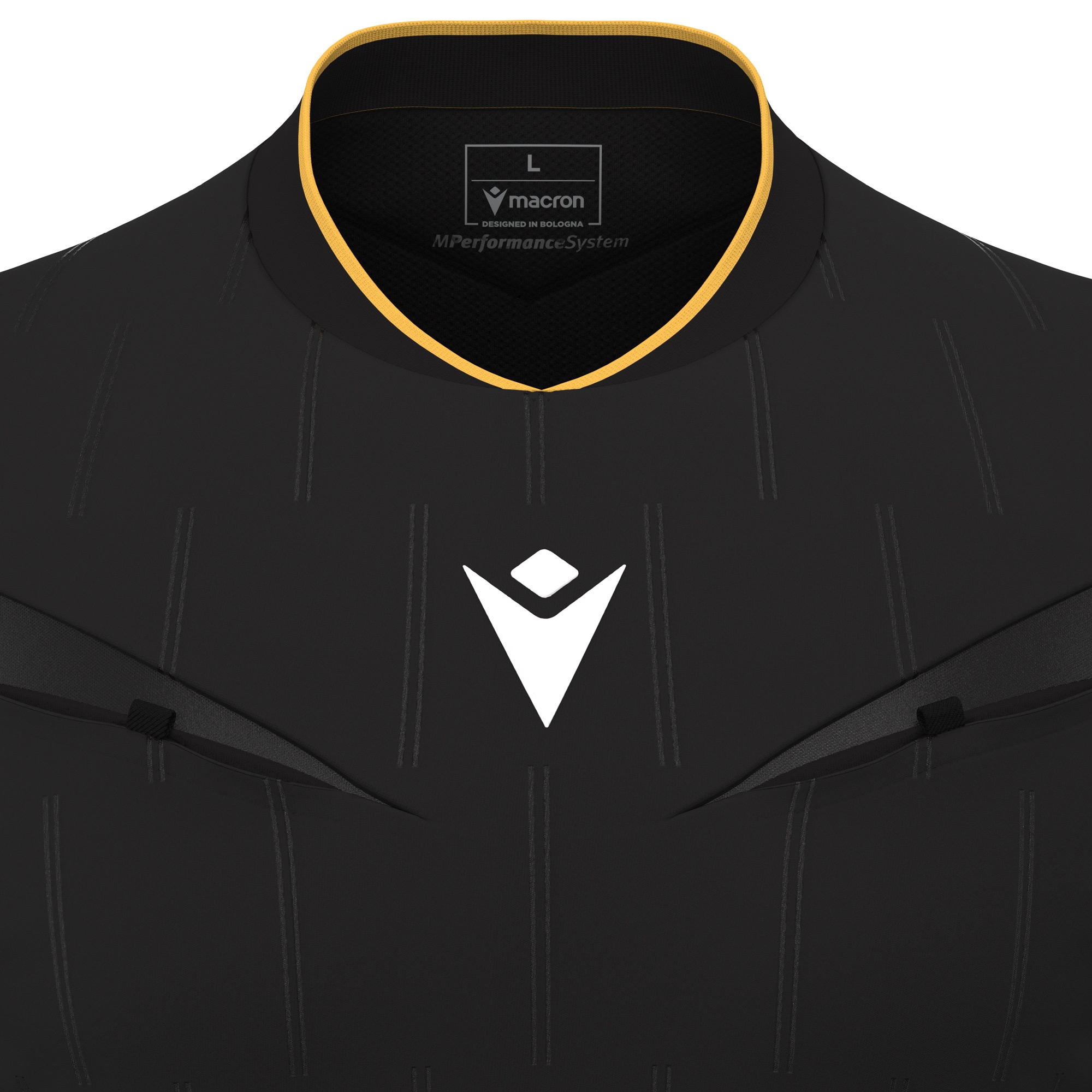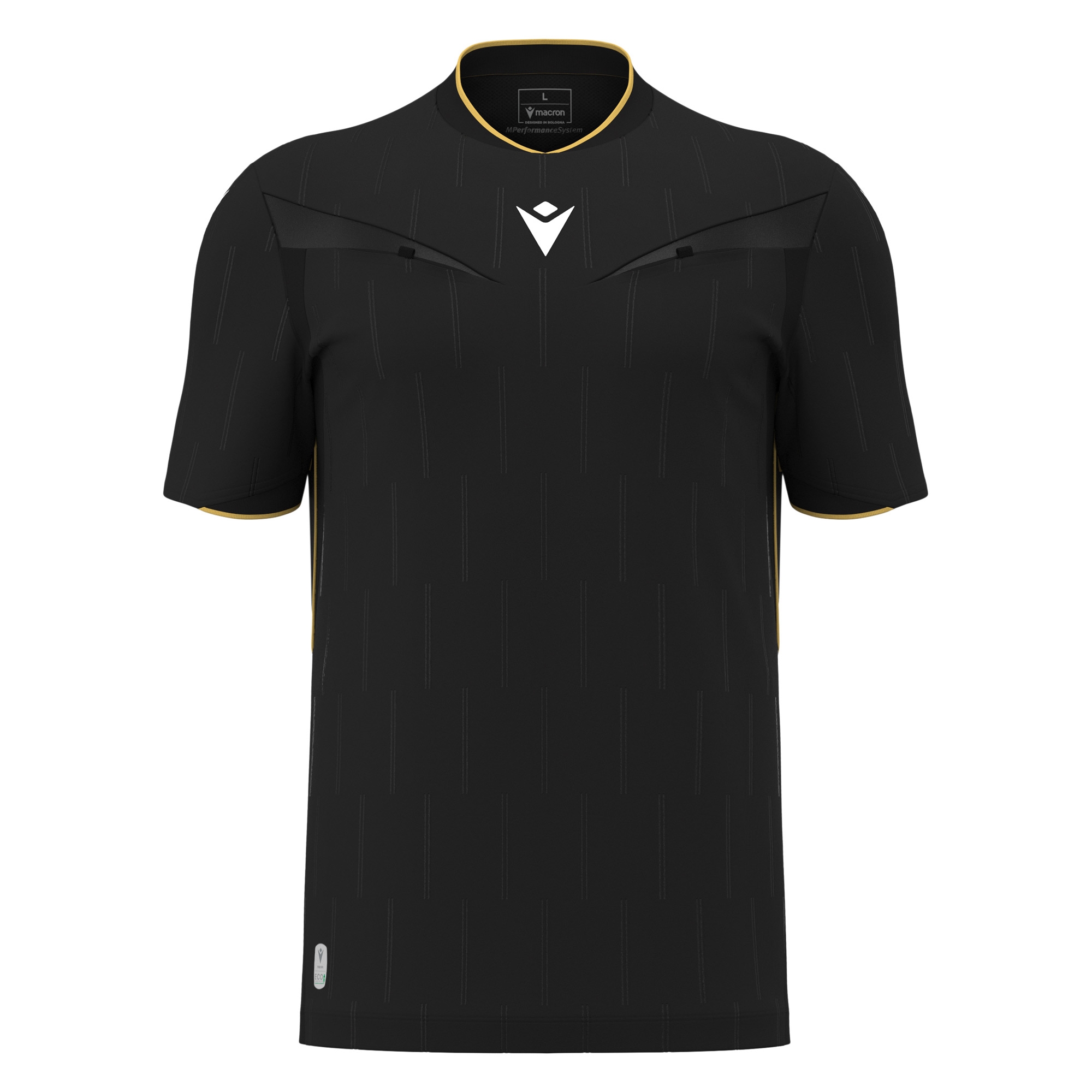 The Mendez Eco jersey is designed for those who direct the game with authority and style, combining functionality and lightness. Made from Eco Softlock fabric with an Eco Micromesh back, it offers breathability and comfort even in the most dynamic situations. The two front chest pockets with Velcro closure ensure practicality without compromising aesthetics, while the embossed design and glossy Eco Everton fabric details add a modern, professional touch. The ribbed collar and the silicone Macron Hero logo complete a garment created for those who approach every decision with precision and balance.