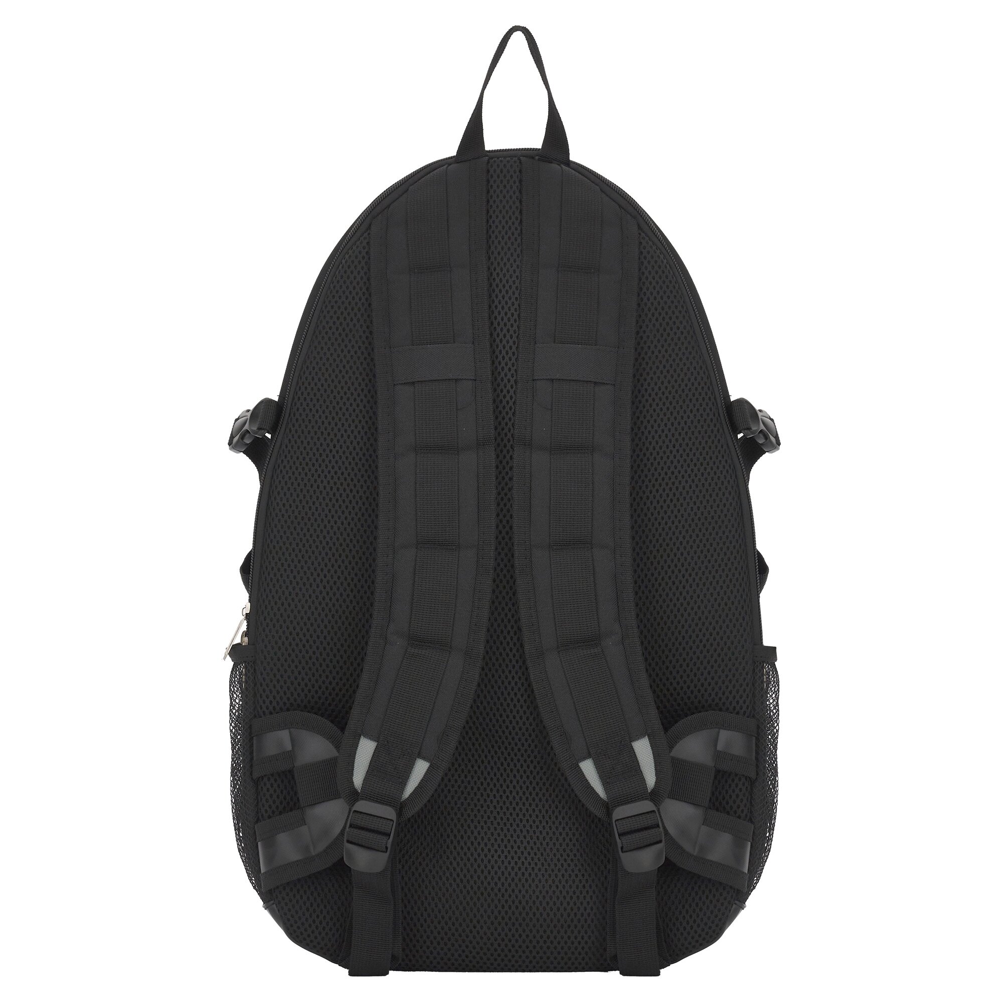 - Buzunare Laterale din Plasă: Două compartimente exterioare din mesh, ideale pentru sticla de apă, umbrelă sau accesorii de mici dimensiuni.