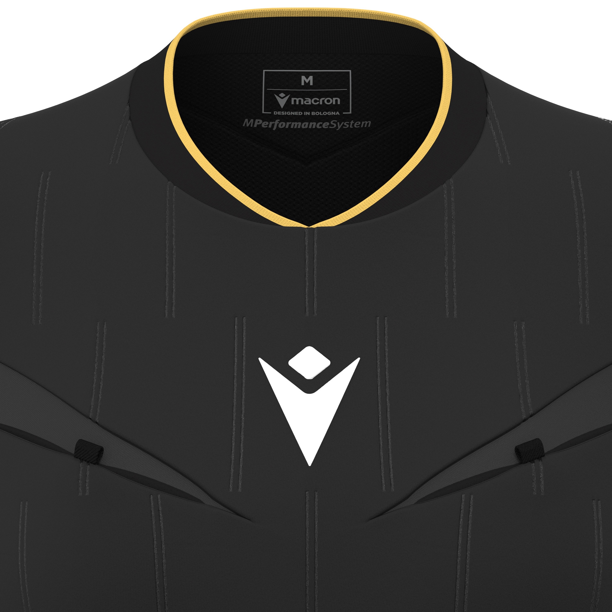 Girocollo in maglieria,Polsi fondo manica in maglieria,2 tasche frontali porta cartellini con taglio ergonomico per facilitarne estrazione e chiusura con velcro,Inserti fianchi in Eco mesh,Texture embossata su fronte e maniche,Inserti triangolari in tessuto lucido su fronte ,Retro in Eco micromesh,Logo Macron Hero in silicone su fronte,Piping in contrasto su fianchi, sottomanica e retrocollo