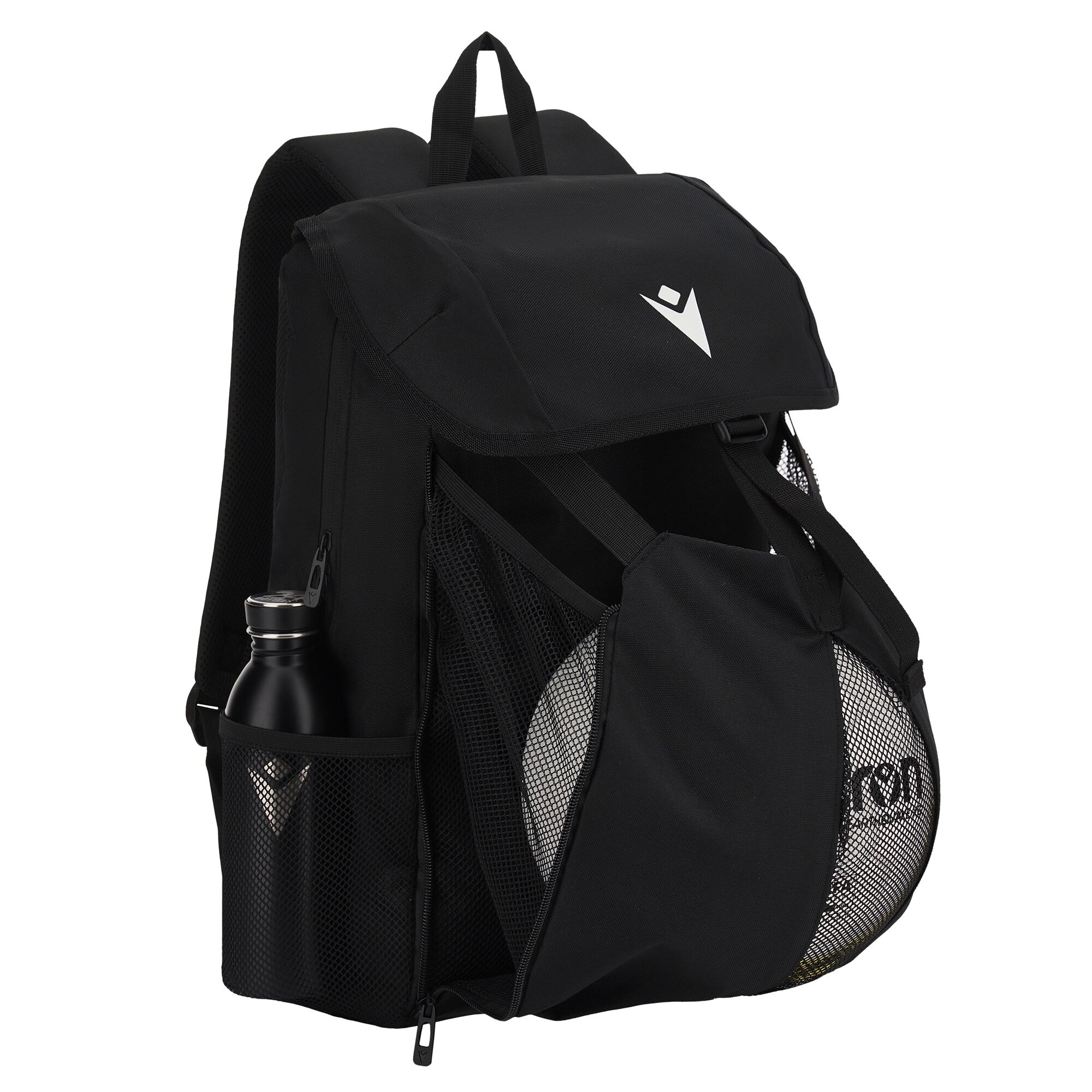 - Buzunar Exterior pentru Minge/Casca: Partea frontală exterioară include un buzunar din plasă elastică (stretch mesh), perfect pentru transportul unei mingi de fotbal, baschet sau a unei căști.