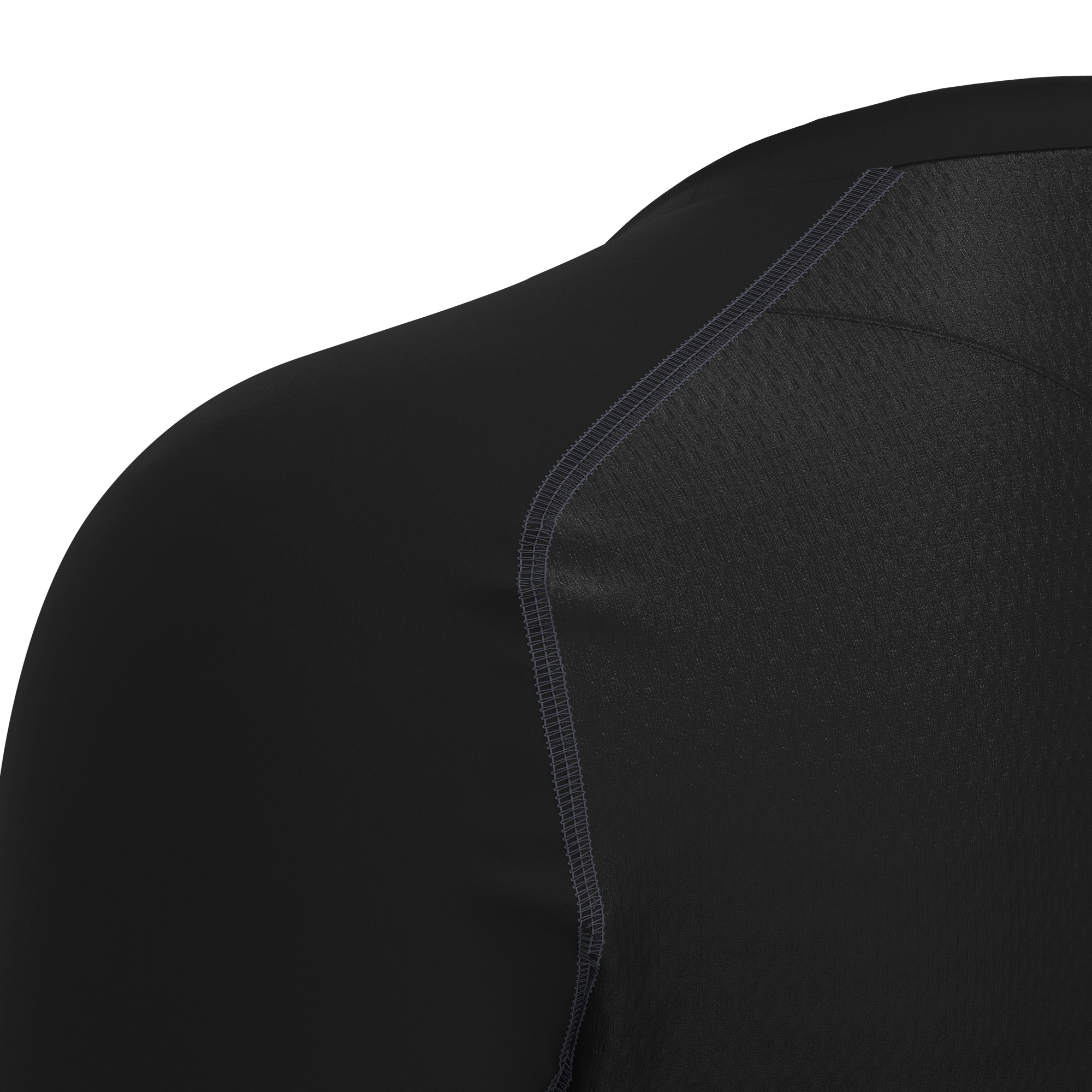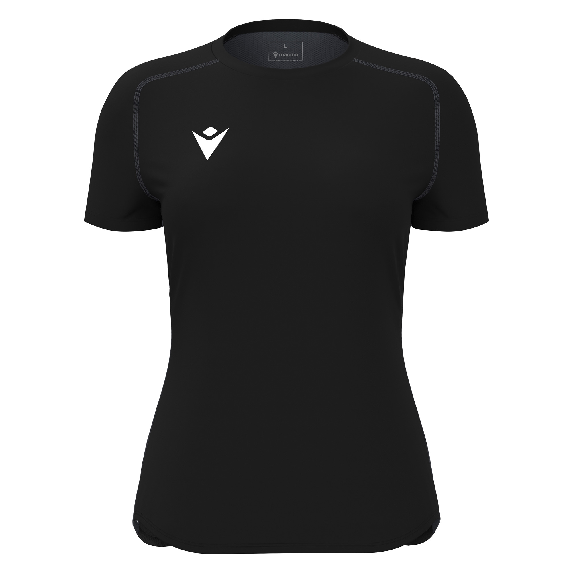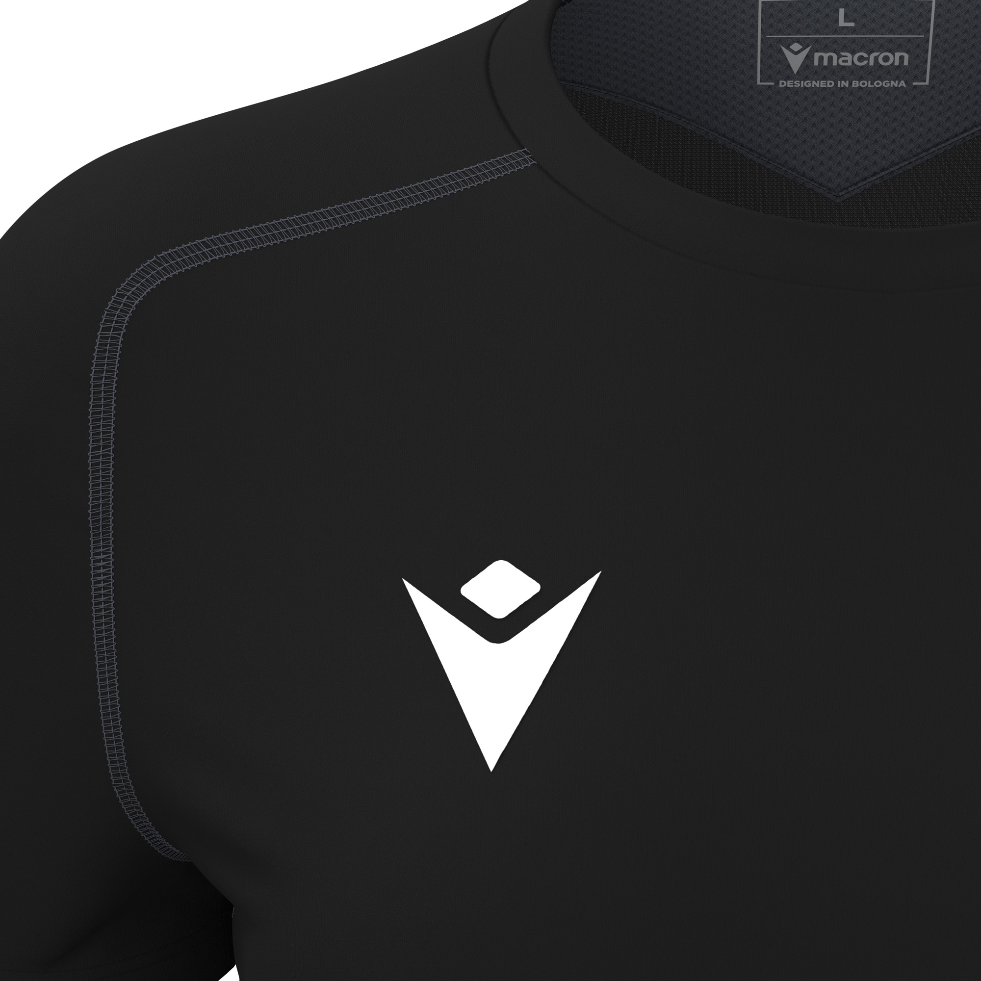 Воротник из основного материала,Спинка из легкого микросетчатого материала,Фасонный трикотажный низ,Плоские швы тройной иглой,Плоские швы в тон,Напечатанный логотип Macron Hero,Вставки на боках из легкой сетки в тон